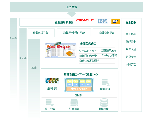 私有云(Private Clouds)是為一個企業單獨使用而構建的,供自己內部人員或分支機構使用,相比于公有云、混合云,私有云能夠提供對數據、安全性和服務質量的最有效控制。隨著大型企業數據中心的集中化,私有云將會成為部署IT系統的主流模式,成為云計算時代演進的一個重要過程。通過建立基礎架構即服務的私有云計算平臺實現基礎設施層面的“IT即服務”。